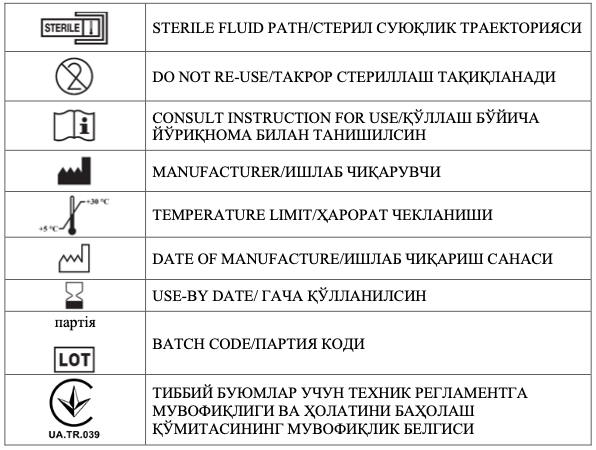 Фойдаланишдан олдин пакетнинг бутлигини ва герметиклигини текширинг.