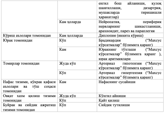 Ўткир тизимли заҳарланиш.
