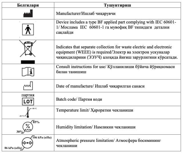 • Тиббий буюмни қўллаш бўйича йўриқномадаги кўрсатмаларга қатъий риоя қилинг,