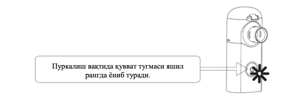 2. Ингаляцияни тугатгандан сўнг, қувват тугмасини босиб небулайзерни ўчиринг.