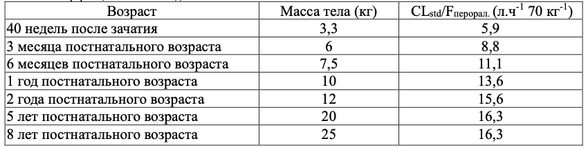 Фармакокинетические величины соответственно возрасту (стандартизированный клиренс,