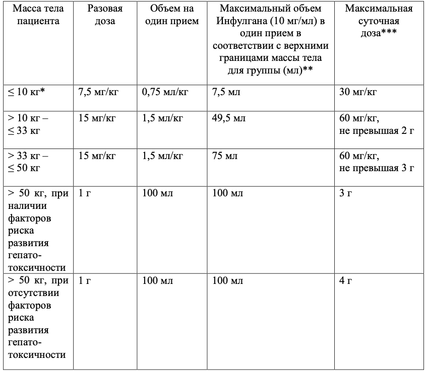 Риск поражения печени возрастает при назначении Инфулгана в дозах, превышающие рекомендуемые.