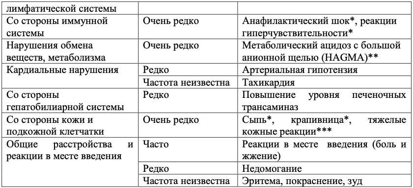* Сообщалось об очень редких случаях реакций гиперчувствительности в виде анафилактического шока, крапивницы, сыпи, требующих прекращения лечения.