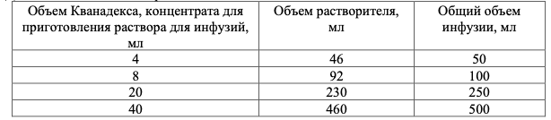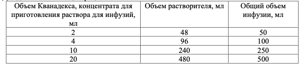 Длительность применения. Нет опыта применения Кванадекса в течение периода более 14 дней.