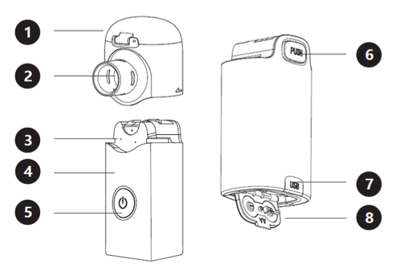 1. Снимите с основного блока ингаляционную маску или загубник, а также небулайзерную камеру.
