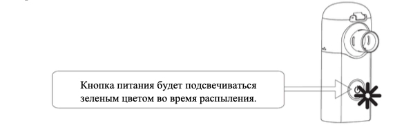 Кнопка питания будет подсвечиваться зеленым цветом во время распыления.
